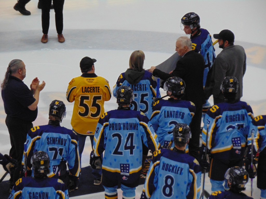 Soulignons que cette partie avait aussi pour but de soutenir Mauricie Parkinson en l’honneur du joueur Jordan Lacerte et que le groupe K-POP se produisait en spectacle à l’intermission de la première période au grand plaisir de la foule qui semble avoir bien apprécié dans les circonstances.