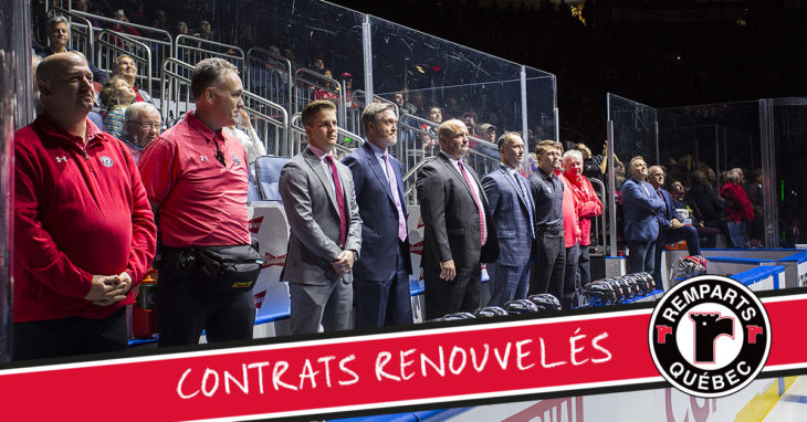 C’est donc dire que l’entraîneur-associé Martin Laperrière débutera une 14e saison derrière le banc des Remparts (2005-2016 et depuis 2018), alors que l’entraîneur adjoint, Benoit Desrosiers (depuis 2017-2018) et l’entraîneur des gardiens de but Pascal Lizotte (2011-2013 et depuis 2019), seront quant à eux de retour pour entreprendre leur quatrième campagne avec l’équipe.