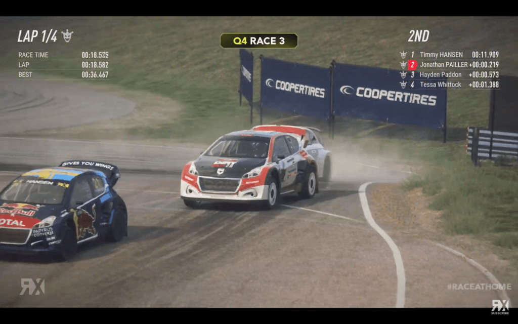 La star de FIA World Rally Championship Hayden Paddon, de Nouvelle-Zélande, est revenue pour sa deuxième manche de la série World RX Esports et a fait les demi-finales, mais n’a pas réussi à trouver une place en finale, au volant d’une Audi S1. Il a terminé devant Fabien Pailler, du Français et du Norvégien Henrik Krogstad en demi-finale deux. En demi-finale, Failrace (Audi S1) n’a pas pu capitaliser sur un bon départ après un contact avec le Lituanien Rokas Baciuska. Le conducteur de GCK Renault Megane a ensuite été condamné à cinq secondes de pénalité pour cet incident.
