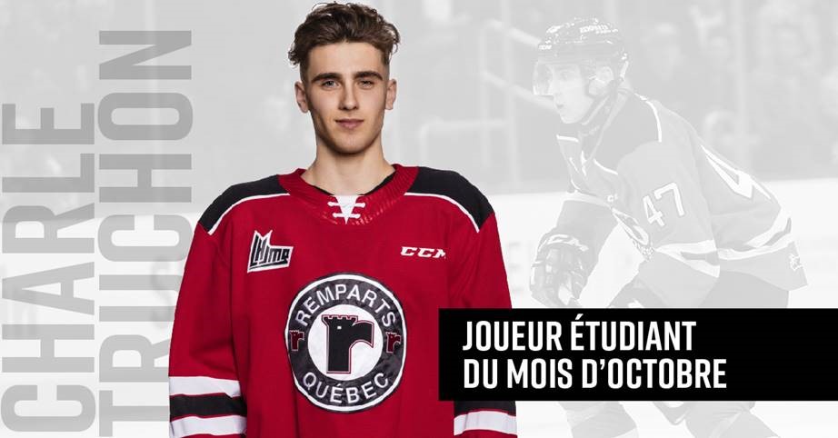 Québec, le mardi 3 novembre 2020 — La direction des Remparts de Québec, par l’entremise de son conseiller pédagogique, M. Simon Tremblay, a annoncé aujourd’hui que le défenseur Charle Truchon avait été nommé à titre de premier récipiendaire du titre de joueur-étudiant pour la saison 2020-2021 et ce, pour le mois d’octobre 2020. Les résultats et l’attitude générale sont considérés pour déterminer le gagnant.