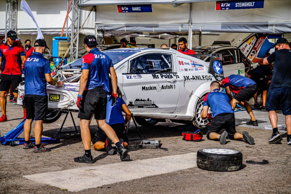 L’équipe d’ingénieurs et de mécaniciens de RX2e s’est mise au travail sur la machine sinistrée, à la vue des caméras en direct appartenant à la nouvelle plate-forme de diffusion RX+, et a réalisé un travail de réparation héroïque à temps pour le troisième trimestre.