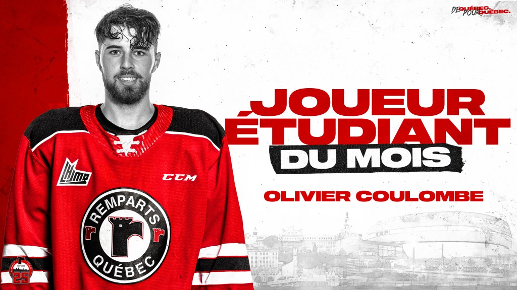 Québec, le mercredi 2 mars 2022 — La coordonnatrice aux études des Remparts de Québec, Marie-Pier Blouin et le conseiller pédagogique Simon Tremblay ont annoncé que l’ailier droit Olivier Coulombe avait été nommé au titre de joueur-étudiant de l’équipe pour le mois de février 2022. Les résultats et l’attitude générale sont considérés pour déterminer le gagnant.