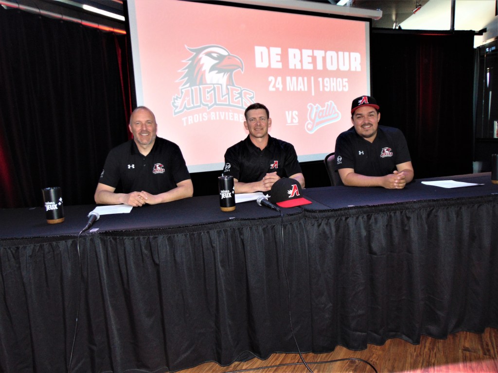 Trois-Rivières, le 02 mai 2022 – Ce matin, 11h, l’organisation des Aigles de Trois-Rivières a convié les médias pour sa conférence de presse sur le lancement de la saison 2022 de la Ligue Frontière, ligue partenaire professionnelle de la Ligue Majeure de Baseball. L’organisation a notamment dévoilé ses objectifs et ses attentes pour la saison, les nouveautés qui attendent les partisans durant l’été et ses nouveaux partenariats. Après 985 jours d’absence, l’organisation des Aigles de Trois-Rivières est enfin de retour. Après une saison où elle a troqué son gilet rouge et noir pour le bleu et blanc d’Équipe Québec, l’équipe trifluvienne est fin prête à entamer sa saison devant les amateurs de la Mauricie. Les Oiseaux disputeront 51 matchs à domicile et 45 matchs à l’extérieur pour un grand total de 96 rencontres en saison régulière. L’équipe trifluvienne est également très excitée de faire son entrée dans la Ligue Frontière, la plus grande ligue de baseball indépendant où évoluent un total de 16 équipes, s’étendant de l’Illinois à l’Atlantique, en passant par le Canada. « La Ligue Frontière est une ligue très compétitive qui offrira aux partisans de Trois-Rivières la chance de voir d’excellents jeunes joueurs qui souhaitent se faire remarquer auprès des équipes de baseball majeur. Ajoutant à ça un circuit à 16 équipes, les amateurs de baseball auront droit à un excellent spectacle », explique René Martin, président des Aigles de Trois-Rivières. L’entrée des Aigles dans la Ligue Frontière signifie également des nouvelles règles concernant l’alignement des équipes. Les partisans trifluviens pourront donc voir de nouveaux visages au sein de la formation. « L’édition 2022 des Aigles ne ressemble pas à l’édition 2019. Les joueurs de la Ligue Frontière sont plus jeunes que la Ligue Canam. Il y a plus de recrues dans les équipes et moins de vétérans. Grâce à notre équipe de recruteurs qui a fait un excellent travail, nous avons déniché des joueurs qui seront très impressionnants à voir jouer », explique Matthew Rusch, gérant des Aigles de Trois-Rivières. Malgré les nouveaux règlements, Rusch a réussi à ramener plusieurs favoris de la foule et à bâtir un noyau de joueurs très intéressant. « Je suis très fier de ramener des joueurs de premier plan comme Raphaël Gladu, Juan Kelly, Louis-Philippe Pelletier, Steve Brown et David Gauthier. Quand tu as des gars de leur trempe dans ton équipe, tout ce qu’il te reste à faire est de bâtir un alignement autour d’eux », souligne Matthew Rusch. Les Aigles présenteront donc une équipe balancée qui performera dans tous les aspects du jeu, et qui sera capable de faire les bons jeux aux bons moments. « Je voulais bâtir une équipe différente des autres années. Habituellement, on avait beaucoup de puissance au bâton, mais peu de constance. Ou encore on avait des lanceurs de balles rapides, mais aucun lanceur spécialisé en contrôle de balle. Cette année, on possède une équipe complète autant à l’offensive, qu’à la défensive, qu’au monticule. On a des gars qui peuvent mettre la balle en jeu, d’autres très rapides, d’autres qui ont de la puissance au bâton, d’autres spécialisés en défense, des gars qui ont des lancers foudroyants, ou encore qui lancent des balles à effet surprenantes », ajoute Rusch. Afin de poursuivre sa mission de faire briller le baseball dans la province, les Aigles sont également très fiers d’avoir signé cinq Québécois (Raphaël Gladu, Louis-Philippe Pelletier, David Gauthier, Michel Dagenais et Sam Belisle-Springer) en plus d’en inviter deux autres à son camp d’entraînement (Sam Poliquin et Guillaume Morin). « Nous avons d’excellents joueurs de baseball dans la province. C’est notre devoir en tant qu’organisation québécoise de donner la chance aux gars de chez nous de pouvoir s’illustrer au niveau professionnel. Je suis très content de pouvoir compter sur des joueurs d’impact québécois qui feront partie du noyau de l’équipe cette année », conclut le gérant des Aigles. Nouveautés au Stade Quillorama La formation trifluvienne, en partenariat avec Canadel, présente sa toute nouvelle Zone Famille Canadel. La Zone Famille Canadel permettra à toutes les familles de venir assister aux rencontres de l’équipe à un coût très abordable. En effet, à l’achat d’un billet adulte à prix régulier, les enfants paieront seulement 3$ l’entrée dans la zone. « C’est un partenariat dont nous sommes vraiment fiers. Ça permet de continuer à offrir des prix très abordables et d’être une activité accessible à tous », se réjouit Etienne Rivard, directeur au développement des affaires et événement des Aigles. L’année 2022 marque également le 100e du baseball professionnel à Trois-Rivières. Afin de célébrer comme il se doit les 100 ans du baseball professionnel dans la Cité de Laviolette, les Aigles organiseront la Série du Centenaire les 16-17 et 18 août prochains. Dans le cadre d’une série contre leurs rivaux québécois, les Capitales de Québec, l’organisation de Trois-Rivières souhaite fêter la riche histoire du baseball dans la ville, riche histoire qui mena au retour de l’équipe en 2013. Les célébrations se tiendront avant et pendant les trois parties avec des cérémonies honorant les pionniers du baseball à Trois-Rivières. Pour l’occasion, les Aigles arboreront l’uniforme des Trios de Trois-Rivières, équipe de baseball professionnel évoluant dans la Ligue Eastern canadienne et dans la Ligue provinciale du Québec de 1922 à 1923. Une autre nouveauté cette année, les Aigles de Trois-Rivières s’associent à l’Expo de Trois-Rivières afin de créer les Matchs de l’Expo. Les parties du 7 au 16 juillet seront présentées dans le cadre des activités de l’Expo, et feront partie des attractions