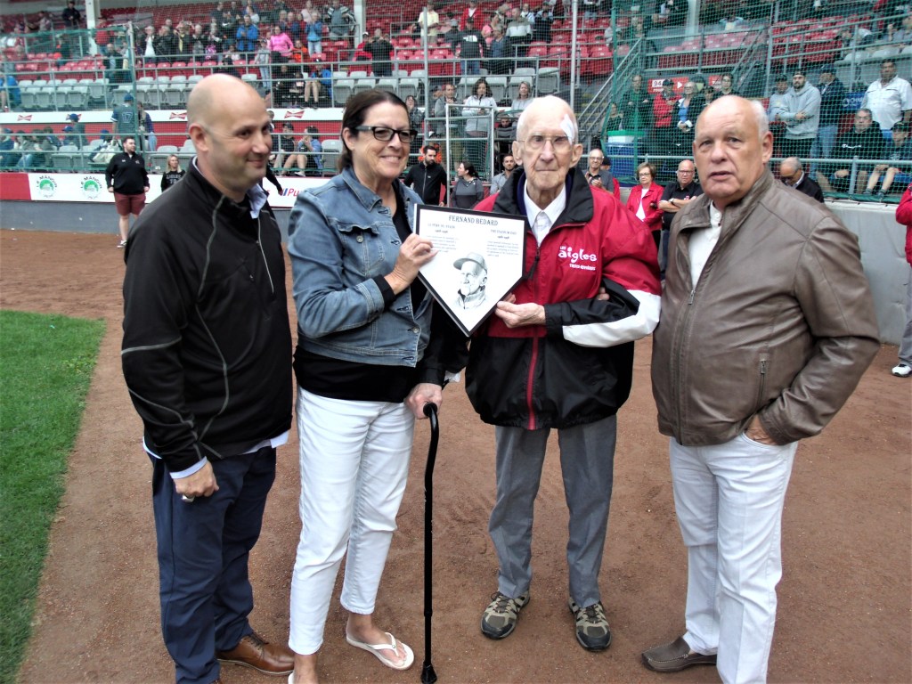 Incidemment, ce 18 août marquait donc l’histoire des 100 ans du baseball professionnel à Trois-Rivières. Des Trios (1922), en passant par les Royaux (1946-51) et les Aigles de la Ligue Eastern (1971-1977), aux Aigles d’aujourd’hui, des joueurs qui ont marqué l’histoire du baseball de Trois-Rivières étaient présents au Stade Quillorama.