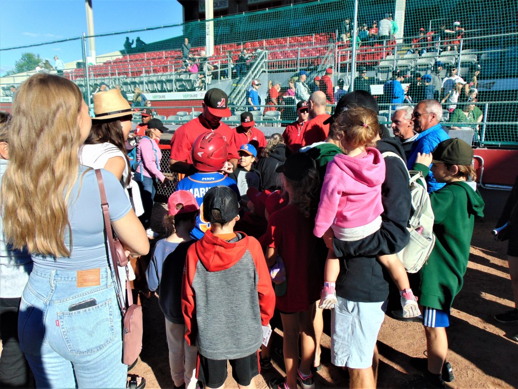Au cours de la même partie à la sixième manche, un hommage de salutations a été rendu au joueur arrêt-court Raphael Gladu, suite à l’annonce de sa retraite à la fin de saison.