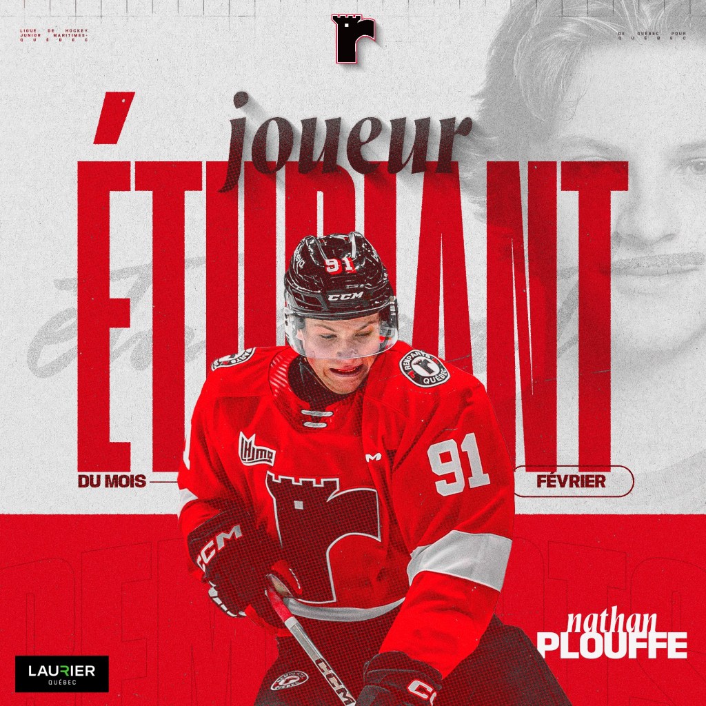 Québec, le 8 mars 2024 — Par l’entremise de son conseiller pédagogique, monsieur Simon Tremblay et de sa coordonnatrice aux études, madame Guylaine Laurin, la direction des Remparts a annoncé que le joueur d’avant Nathan Plouffe remportait le titre de joueur-étudiant Laurier Québec pour le mois de février 2024. Les résultats et l’attitude générale sont considérés pour déterminer le gagnant.