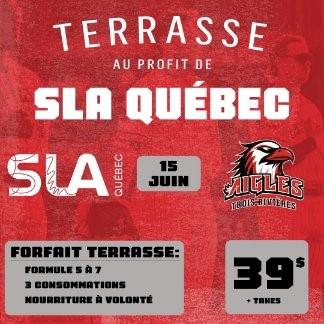 | Ce samedi 15 juin, les Aigles s’allient à leurs partenaires du pôle de l’Exposition afin de présenter la Marche pour Vaincre la SLA. Les actions de cette journée seront dirigées particulièrement vers Jacques Veilleux, directeur de course respecté du Grand Prix de Trois-Rivières depuis plus de 46 ans, qui lutte lui-même contre la sclérose latérale amyotrophique depuis le mois de septembre. Pour cette occasion, 8$ par billet-terrasse vendu pour ce match contre les ValleyCats de Tri-City sera remis directement à l’organisme SLA Québec. De nombreuses activités auront lieu tout au long de la journée dans les alentours du Stade Quillorama. Il y aura entre autres de l’animation avec des mascottes et des jeux gonflables, une exposition de voitures de course présentée par le GP3R et d’autres surprises pour ceux qui marcheront sur le circuit du Grand Prix. Des bouchées et des mots Le coup d’éclat de cet événement sera certainement le défi «Des bouchées et des mots» auquel prendront part Jacques Deshaies (directeur des séries Formule 1600 et Coupe Nissan Sentra du GP3R), Dominic Fugère (directeur général du GP3R), Martin Langlois (directeur général de l’expoTR) et René Martin (président des Aigles). Ces quatre personnalités influentes de la scène événementielle trifluvienne s’engagent à jeûner et être en silence durant la journée afin de se mettre dans la peau des personnes vivant avec la SLA pour amasser des fonds. Le public est invité à donner pour encourager les participants au défi. Chaque don leur permettra de manger et parler pendant la journée : 5$ par bouchée, 5$ pour un mot et 20$ par phrase. provoquer des changements en leur faveur. Elle a également comme mission de conscientiser le public afin qu’il comprenne mieux la maladie et se mobilise pour qu’il contribue à la cause et ainsi financer les projets de recherche les plus prometteurs et pertinents, susceptibles d’améliorer la condition de vie de gens touchés et de guérir la maladie. Pour plus d’information, visitez sla-quebec.ca. Les Aigles de Trois-Rivières 1550 avenue Gilles-Villeneuve, J0K 1A0, Trois-Rivières Vous avez reçu cet email parce que vous faites partie de la liste des partisans des Aigles. (André Butch Bouchard: albp@sympatico.ca) (Collaboration: Zachary Trottier: AIGLES de Trois-Rivières) |