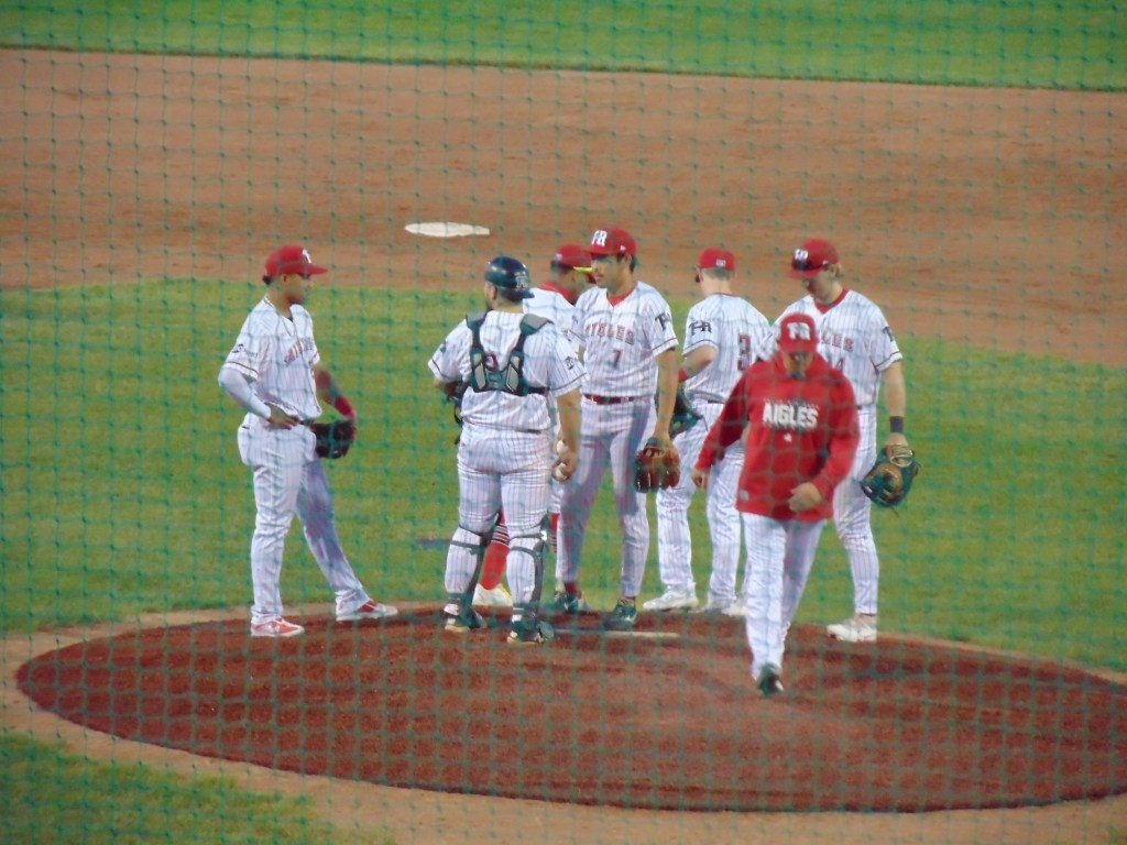 Les Aigles s’inscrivent au pointage dès la manche initiale. Après des coups sûrs de Pelletier et Gladu, Dalton Combs frappe dans une balle à double-jeu qui fait marquer Pelletier. Puis, en 3e manche, ils augmentent leur avance à 2-0. Michel Dagenais saute sur le 1er lancer qu’il voit pour frapper son 1er coup sûr de la saison. Les Aigles remplissent les coussins, mais seul Dagenais viendra marquer sur un coup sûr de Combs, qui produit son 2e point de la rencontre.