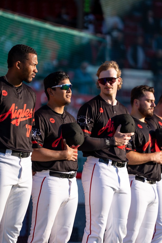 | Si un thème récurrent commence à se dégager dans cette saison 2024 de nos oiseaux, c’est qu’ils sont véritablement à leur meilleur quand ils sont devant leurs partisans au Stade Quillorama et la dernière semaine d’action n’a pas fait exception. Dans un début de semaine plus difficile du côté de Sussex, les Miners ont défait les représentants trifluviens lors des deux premiers matchs (7-6, 6-4) malgré le fait qu’ils avaient pris des avances de 2-0 à chaque fois. Heureusement, les hommes de Matthew Rusch se sont repris jeudi soir en prenant une avance de 6-0 dans les 5 premières manches grâce à des points produits de Louis-Philippe Pelletier , Dalton Combs , Brendon Dadson (coup de circuit), Thomas Green (2 points). C’est finalement Yunior Thibo qui est venu obtenir son premier sauvetage de la saison en 9e manche, afin de confirmer le gain par la marque de 6-4. Lors de leur retour à Trois-Rivières, les Aigles semblaient en mission pour la série qui les opposait aux Titans d’Ottawa qui étaient tout juste devant eux au classement. Lors du match de vendredi, Tucker Smith a limité les Titans à seulement 4 coups sûrs et aucun point en six manches et un tiers. Par la suite ce fut au tour de l’attaque d’être opportuniste en ajoutant d’abord 3 points en 5e manche et 4 autres en 7e pour prendre une écrasante priorité de 7-0. C’est finalement Dalton Combs qui a mis le point d’exclamation à cette soirée en créant un deuxième point dans la partie sur un double pour sceller la victoire de 8-1 des oiseaux. Le lendemain, la même fougue animait les Aigles et c’est Rodrigo Orozco qui fut la bougie d’allumage en claquant un circuit de 2 points à sa première présence au bâton depuis sa blessure subie en fin de saison l’an dernier. Par la suite, les Brown, Gladu et Combs ont continué la lancée offensive et l’artilleur québécois Jesen Therrien fut sans pitié face aux frappeurs d’Ottawa pendant 8 manches pour offrir une troisième victoire consécutive aux Aigles par la marque de 7-4 en cette journée où la fête nationale était à l’honneur. Malheureusement, les Aigles n’ont pas eu la chance de compléter le balayage en raison de la forte pluie qui est tombée sur la région lors de la journée de dimanche. La partie sera reprise dans le cadre d’un programme double lors de la prochaine visite des Titans en ville. Les Aigles finissent donc la semaine exactement comme ils l’avaient commencé au classement, c’est-à-dire à égalité au 3e rang avec Ottawa. Les deux équipes présentent une fiche identique de 20 victoires et 17 revers. La prochaine semaine d’activité commencera à la maison par une série de 3 matchs contre les ValleyCats de Tri-City. Le tout se poursuit ce mercredi sur le coup de 19h05. Les Aigles prendront ensuite la route de Brockton au Massachusetts afin d’y affronter les Knockouts de la Nouvelle-Angleterre, la nouvelle équipe du circuit Tashler. |