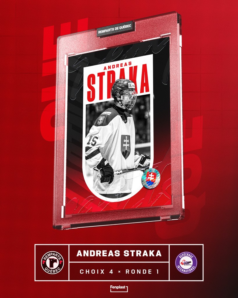 Avec le choix numéro 4 au total, les Remparts ont jeté leur dévolu sur le joueur d’avant Andreas Straka. Âgé de 17 ans, il a porté cette saison les couleurs de l’équipe nationale de la Slovaquie des moins de 18 ans et des moins de 17 ans, du HK Poprad U20 et du HK Poprad. Au total en 71 parties, il a marqué 21 buts et obtenu 29 passes pour 50 points. Il a tout récemment participé au Championnat mondial des moins de 18 ans avec l’équipe nationale slovaque.