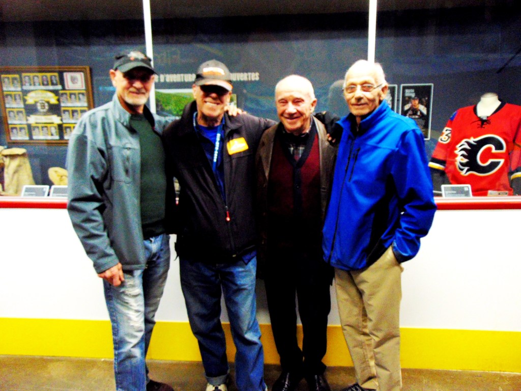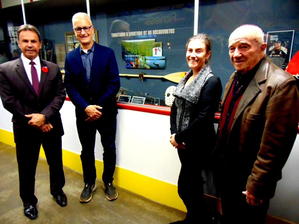 Sur la photo (de gauche à droite) : Michel Angers, Mario Vallée (président de TacTac et monteur de l’exposition), Élizabeth Coutu (chargée de projets du Digihub) et Robert Lord, président du Grenier du sport. (Photo: André Butch Bouchard)