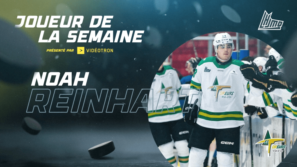 Le plus récent Joueur de la semaine Vidéotron est Noah Reinhart des Foreurs de Val-d’Or. Au cours d’un trio de matchs sur la route, l’ailier de 20 ans originaire de Dundas, en Ontario, a marqué cinq fois et a ajouté une passe, alors que les Foreurs ont obtenu une fiche de 2-1-0-0 la semaine dernière.