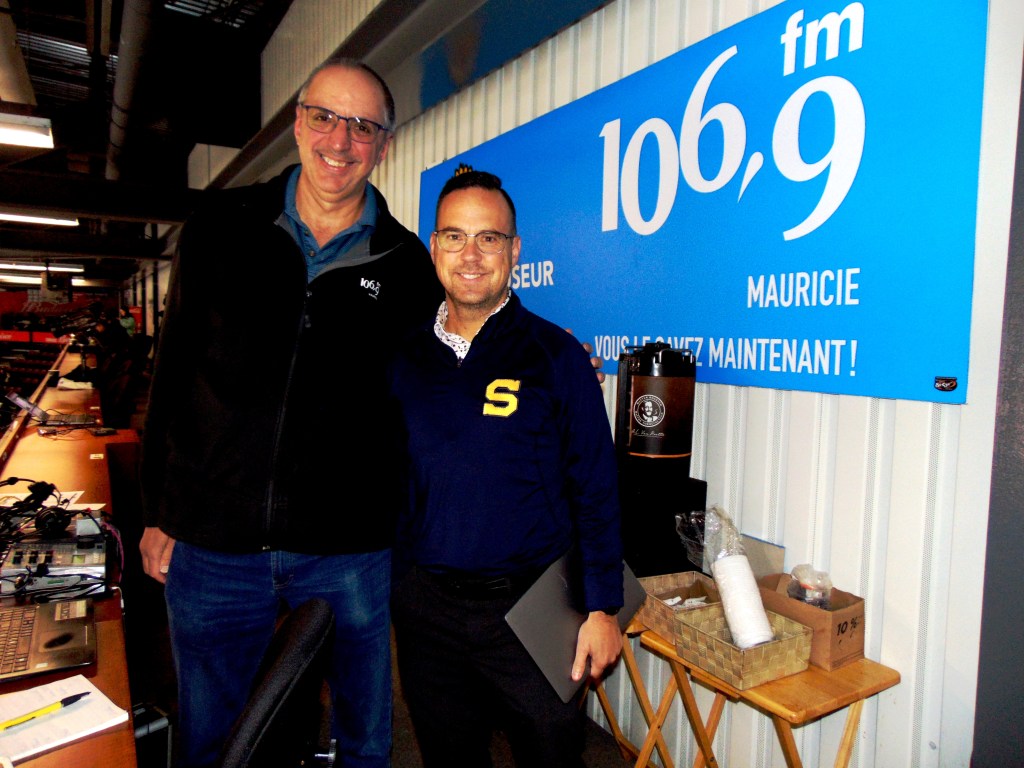 De son côté, le descripteur Claude Boucher du 106 9 (à gauche)qui célèbre cette année ces 25 ans de description avec à ses côtés Steve Turcotte directeur des communications, cette année ces 25 ans de description nous a accordé l’entrevue qui suit, écoutons-le: