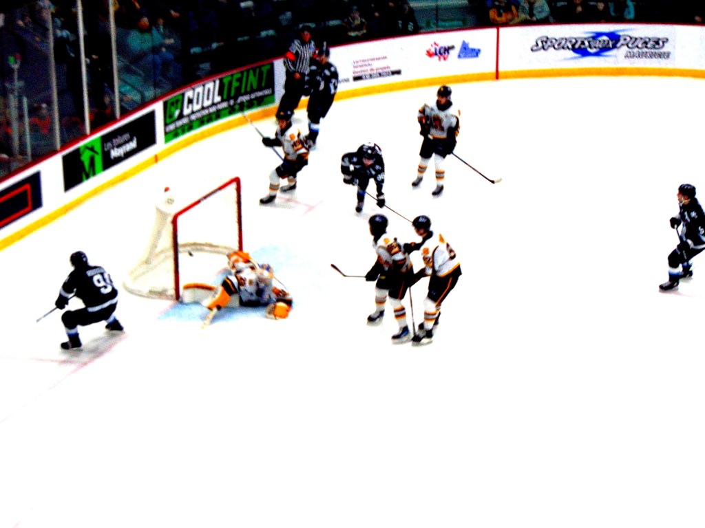 En effet,, après une belle remontée en deuxième période, avec deux buts égalisant 3 à 3, il ont réussi à maintenir les visiteurs en échec jusqu’à la fin de troisième période.