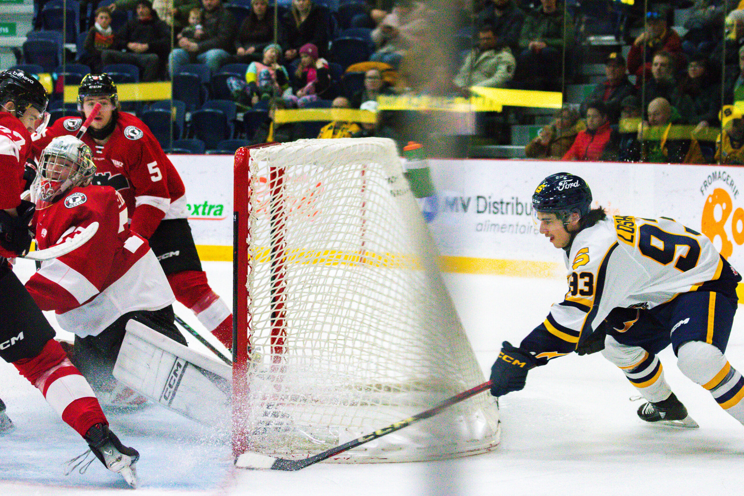 Les 2600 personnes réunies au Centre Gervais Auto ont assisté au déblocage de Yoan Loshing. Le vétéran de 20 ans a marqué ses deux premiers buts dans l’uniforme shawiniganais, complétant deux spectactulaires séquences qui a mystifié le gardien Benjamin Lelièvre.