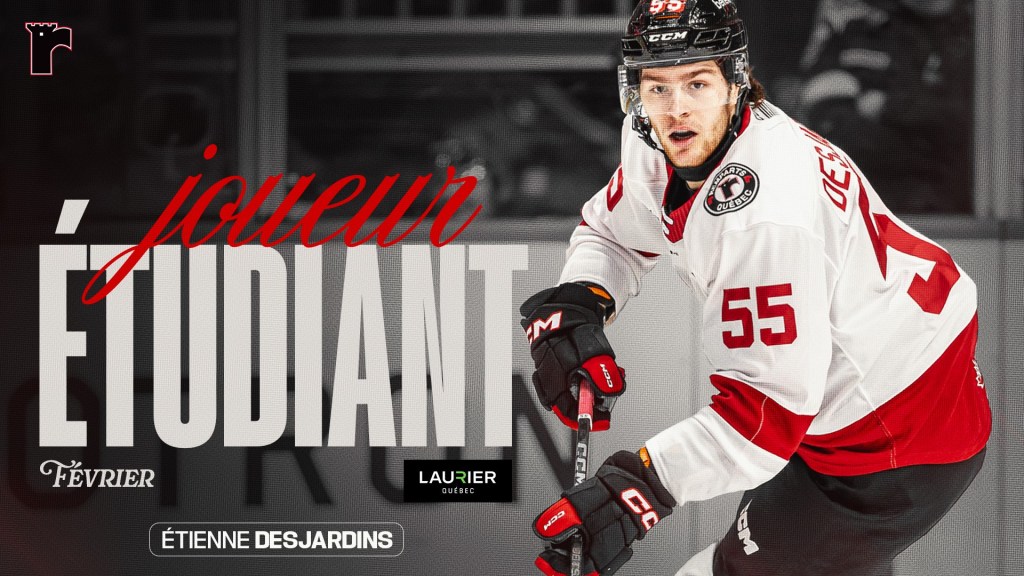 Québec, le mercredi 5 mars 2025 – Le défenseur Étienne Desjardins a été nommé aujourd’hui au titre de joueur-étudiant Laurier Québec pour le mois de février. L’annonce a été effectuée par le conseiller pédagogique des Remparts de Québec, Simon Tremblay et la coordonnatrice aux études, Guylaine Laurin. Les résultats et l’attitude générale sont considérés pour déterminer le gagnant.