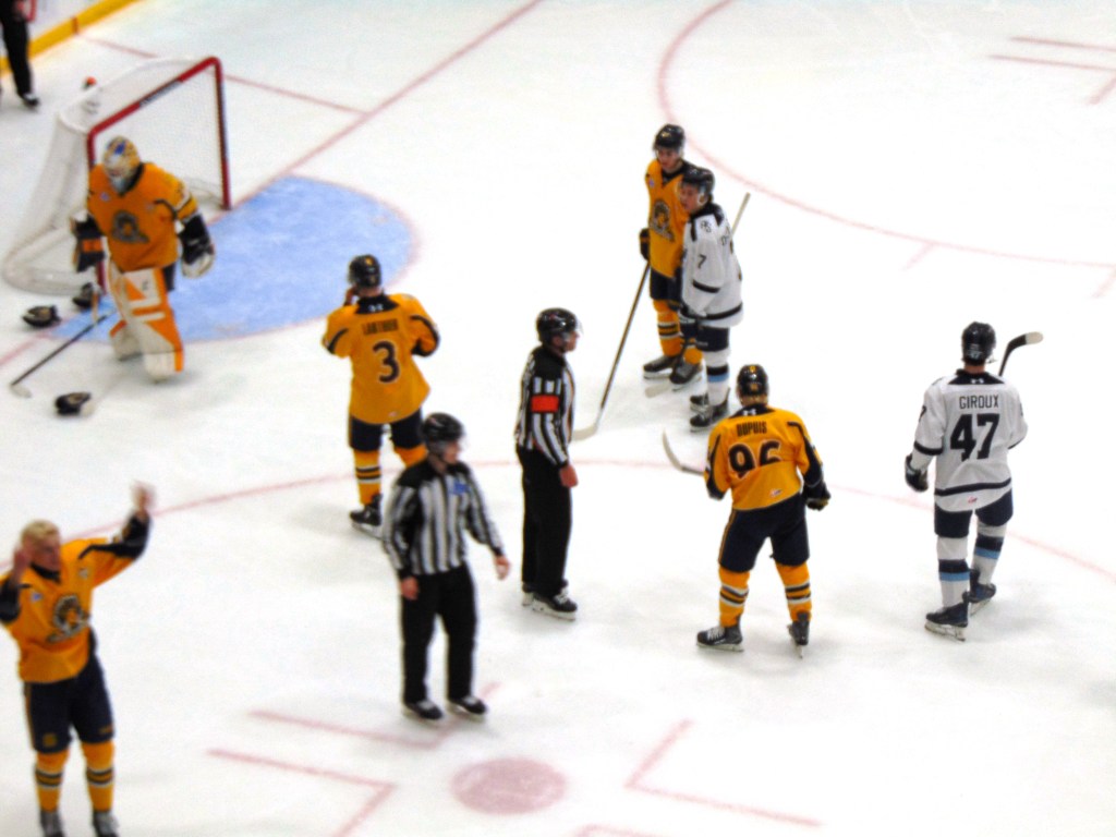 En troisième période, il y a eu du brasse camarade avec quelques punitions de part et d’autre. Mais le 3e but des Sherbrookois est venu jeter une douche froide dans la foule.