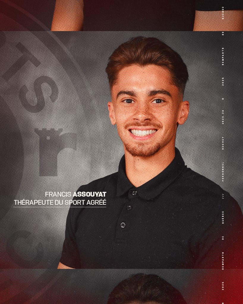Quant au thérapeute du sport agréé, Félix-Antoine Lavoie, il a annoncé son départ pour relever un nouveau défi professionnel dans le monde médical. Il sera remplacé par Francis Assouyat qui entrera officiellement en poste le 1er juillet. Détenteur d’un baccalauréat en kinésiologie et d’une maîtrise en thérapie du sport de l’Université du Québec à Trois-Rivières, il se joint à l’organisation, un terrain connu pour lui, puisqu’il a effectué son stage en milieu de travail avec les Remparts, la saison dernière.