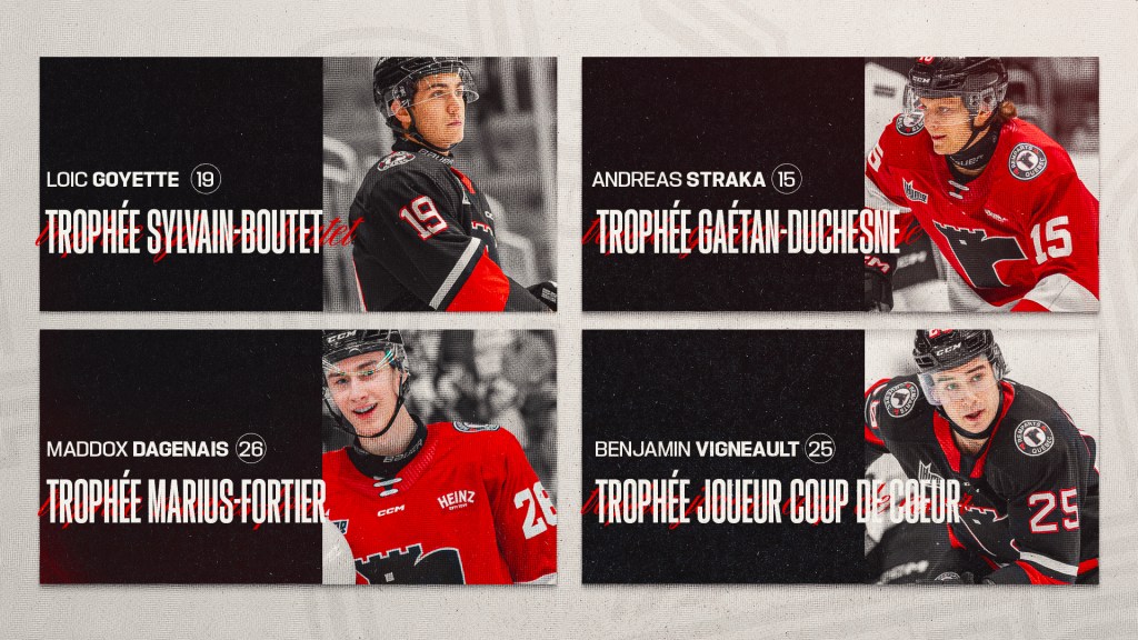 Andreas Straka remporte le trophée Gaétan-Duchesne et succède ainsi à Andrew Gweon qui en avait été le récipiendaire en 2023-2024. Les autres joueurs de l’histoire de l’équipe à avoir remporté ce titre sont Pier-Olivier Roy (2022-2023), Nicolas Savoie (2021-2022), Nathan Gaucher (2020-2021), Nicolas Savoie (2019-2020), Andrew Coxhead (2018-2019 et 2017-2018), Olivier Garneau (2016-2017), Alexandre Sills (2015-2016), Kurt Etchegary (2014-2015), Francis Lambert-Lemay (2013-2014), Kurt Etchegary (2012-2013), Frédérick Roy (2011-2012), Alex Wall (2010-2011), Jonathan Audy-Marchessault (2009-2010) et Mikaël Tam (2008-2009). Marc-Olivier Vallerand avait quant à lui remporté cet honneur lors de l’instauration de ce trophée en 2007-2008.