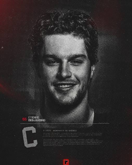 Étienne Desjardins, âgé de 19 ans, est nommé capitaine des Remparts pour l’édition 2025-2026. Desjardins, un choix de troisième ronde (49e au total) des Eagles du Cape Breton, a donné ses premiers coups de patin dans le circuit Cecchini lors de la saison 2022-2023 en disputant deux parties. Il en était à sa dernière année M18 AAA, avec les Vikings de St-Eustache où il était d’ailleurs le capitaine de la formation. C’est en 2023-2024 qu’il devient un joueur régulier de l’alignement des Eagles et à sa deuxième saison, il est échangé aux Remparts lors de la période de transaction de décembre. Au total, il a disputé à ce jour 119 parties, marqué trois buts et récolté 12 passes pour 15 points. Il entreprend cette année sa 3e saison complète dans le circuit junior québécois.