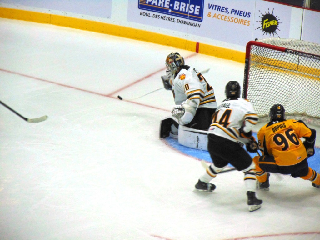 a trompé la vigilance du gardien St-Onge alors que la rondelle s’est doucement faufilé derrière lui, entre ses jambières. Et ce, devant les 3778 spectateurs qui auraient aimé une conclusion différente pour un match d’ouverture de leurs favoris.