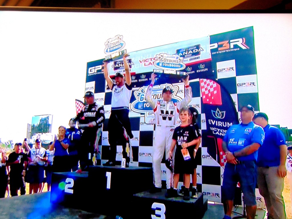 Peu après, Patrik Wittmer (Nissan Micra de classe Compact) heurtait le mur et se retrouvait immobilisé sur la piste. C’était inévitablement une neutralisation et celle-ci fut tellement longue qu’il a été impossible de relancer la course. Fortin l’emporte donc devant Blok, Labbé, Brad Ranson (Hyundai Genesis) et Shelby Mills (Hyundai Veloster).
